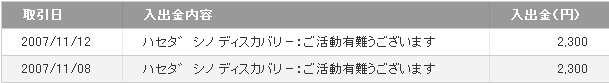 入院している間にディスカバリーネットミニで入金がありました!!